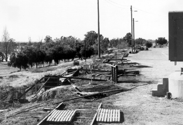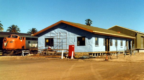 Work on the Mildura Freightgate office was well underway by 4-10-1986. Photo: Bruce McLean