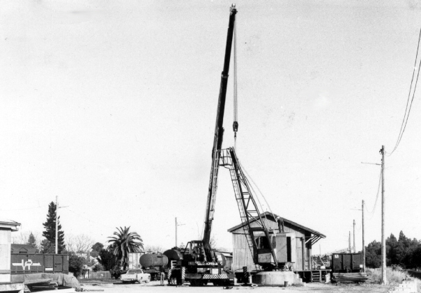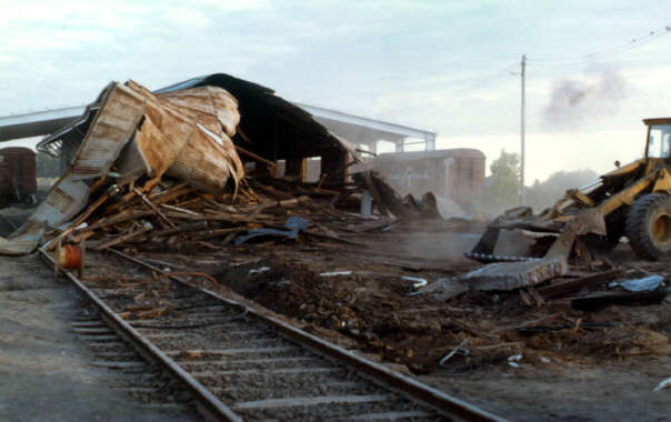 Work commenced on the demolition of the crane shed and platform. 5-4-1986. Photo: Bruce McLean