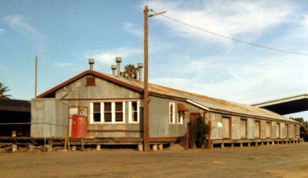 Mildura goods shed from the outwards goods side. Tenders were called in March 1985 for a new Freightgate building. Photo: Bruce McLean