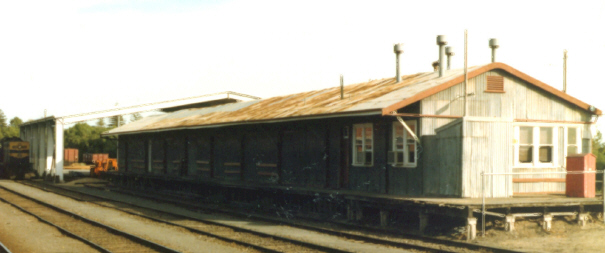 To meet the continuing increase in freight traffic, the goods shed was extended in September 1912 however disaster occurred about 1 p.m. on Saturday 6-5-1916 when the goods shed and its contents were completely destroyed by fire. Goods trucks and passenger carriages - including the dining car "Avon" - had their paint blistered by the heat before they could be hand- pushed away from the fire. As it was a Saturday, the only available locomotive had insufficient steam left in its boiler to be useful for moving the rolling stock. A temporary goods shed was provided.