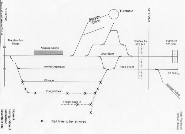 Proposal by Connell Wagner Pty. Ltd. for rationalisation of Mildura railway yards. May 2002. Source: Department of Infrastructure