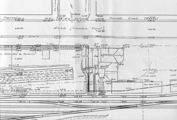 The original 1903 bridge over Madden Avenue was of timber construction with 3 openings of 20 feet and 2 openings of 15 feet. On 15-3-1933 a movement was noticed in the track on the bridge during shunting operations. It was found that a bridge pile was decayed under the road surface. Two new piles were installed during October 1933.