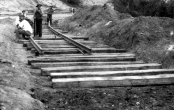 During April 1951, the former Construction siding leading to the R.M. Anderson sawmills and Murray River was rebuilt in advance of the arrival of the "Centenary - Jubilee Train".