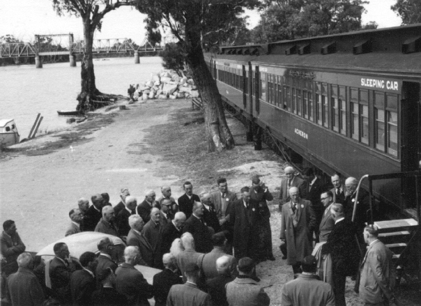 A deputation of Mildura City councillors and the Town Clerk, armed with plans for development of the riverfront, met the Premier (Mr. R. Hamer) in Melbourne on 17-11-1972. It was then announced that the Premier had granted the City Council $100,000 with $51,000 to remove the railway lines and cattle yards to Benetook Avenue and the rest for riverfront development. The Victorian Railways had finished plans and work could start immediately.