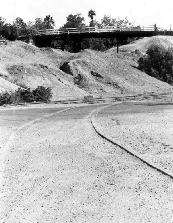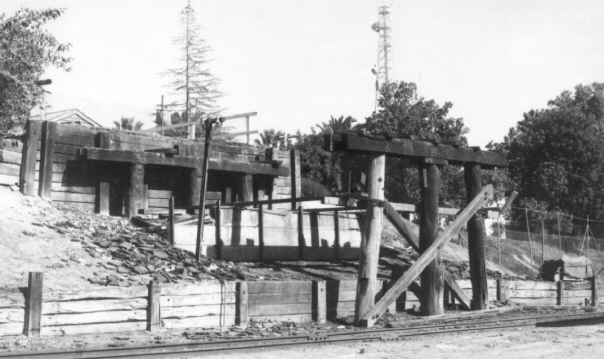 At the end of the main line from Melbourne was at the turnout to the locomotive turntable, located opposite Olive Avenue on what is now vacant land abutting Walnut Avenue extension. Pepper trees identify the area of the coal stage and turntable. The turntable was available for use by 8-8-1904.