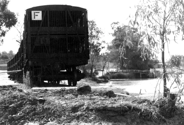 An interesting development at this time was the announcement by the Country Roads Board and Mildura City Council that agreement was required to be reached in three months to site a new road bridge to replace the existing bridge over the Murray River (originally built under the Border Railways Agreement). The C.R.B. favoured a bridge leading off the end of Deakin Avenue, passing over the railway on the site of the demolished goods yard bridge before spanning the river. The Council favoured a site adjacent to the existing bridge. The latter site was eventually selected and a new bridge built in 1985.