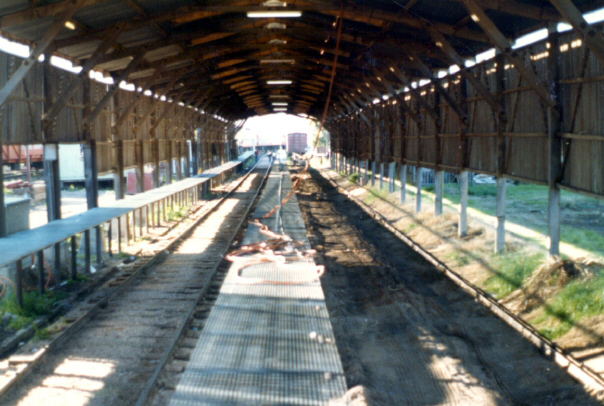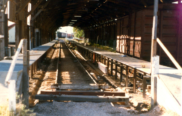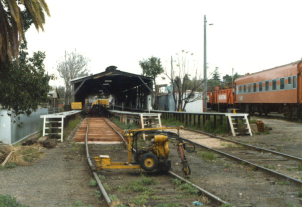 The tracks in the carriage shed were re-laid with heavier rail in September 1989.
