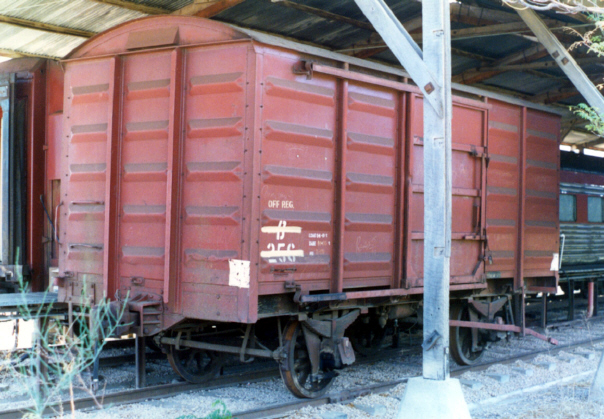 Off-register steel van B202 was sent to Mildura to be used by the Mildura Sub-depot Foreman as a replacement store for 919H, arriving on 13-12-1982. The wheels and other under-floor equipment were removed in July 1983 and B202 took up a permanent place in August 1983 near the diesel locomotive fuel point.