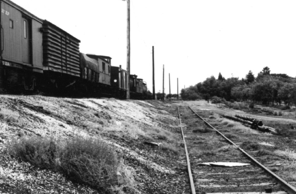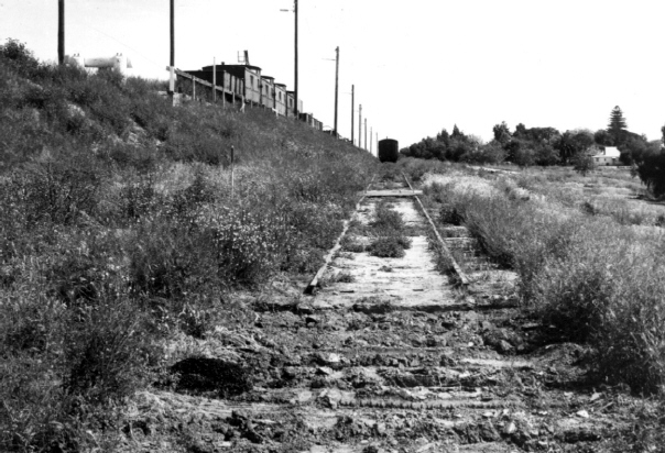 A section of the downgrade track from the railway yards was left for the storage of rolling stock and a baulk was placed across the end of this line on September 12, 1973.