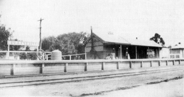 Murrayville was opened for goods traffic during construction of the line on 8-1-1912. When officially opened, it was established with a crossing loop and loop goods siding with a dead end siding at the down end. Two 20 feet x 12 feet portable buildings separated by a semi enclosed area of the same dimensions were provided for staff and passenger accommodation. A van goods shed and lamp room were also on the platform.