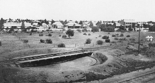The 53 foot turntable at Murrayville following its transfer from Woomelang. 1925. Photo: From an old Post Card, John Thompson Collection