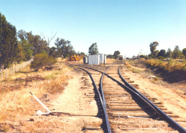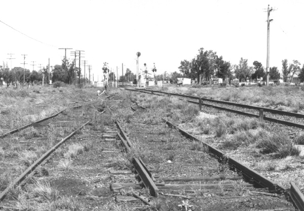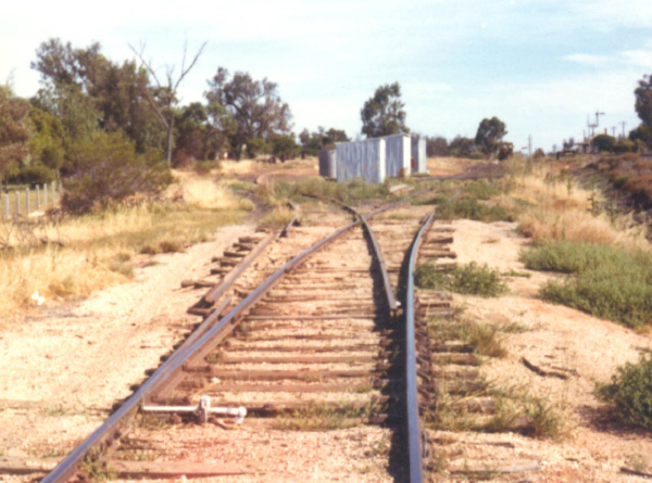 The Construction Siding erected in 1922 for the building of the Morkalla branch line, was used for many years for the storage of mechanised track equipment and from time to time, for the holding of wagons for dried fruit traffic. Following the installation of flashing lights at the Murray Avenue level crossing at the up end of the station yard on 20-8-1981, the Construction Siding was considered redundant as it complicated the installation of level crossing track circuits. The siding was closed and the points removed in August 1981.