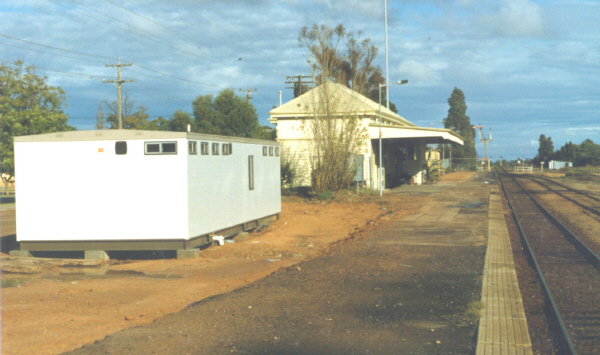 The passenger platform was completed in January 1921. A wooden portable hut for use as a station office and a mallee waiting shed for the travelling public was provided.