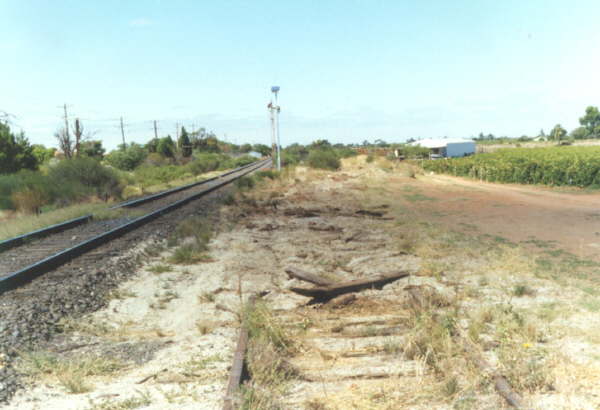 With the loss of dried fruit, fuel and briquette traffic from Red Cliffs, the sidings in the station yard have seen little use and the Red Cliffs Co-operative and Aurora Packing Companies sidings redundant. The Rail Tractor (RT25) was withdrawn in April 1996.
