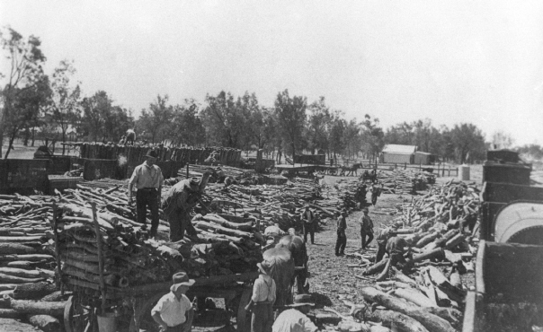 Firewood or trellis posts for vineyards from the Meringur line, at Redcliffs. Circa 1930. Photo: J. Wright Collection
