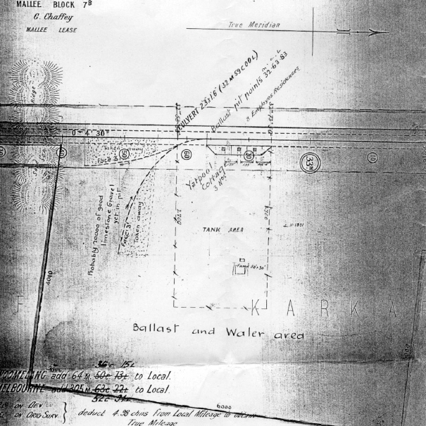 Yatpool ballast siding showing on engineer's drawings for construction of railway to Mildura. 1904. Source: Railway Construction Branch, Bruce McLean Collection