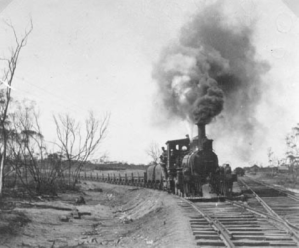 S300 with three water tanks and a rake of ballast wagons on the Yatpool ballast siding. A portable building on Yatpool station can be seen in the right background as well as a tent. There does not appear to be a loop line constructed at this time, making the year most likely1903. Photo: Wilf Henty, courtesy John Kiely