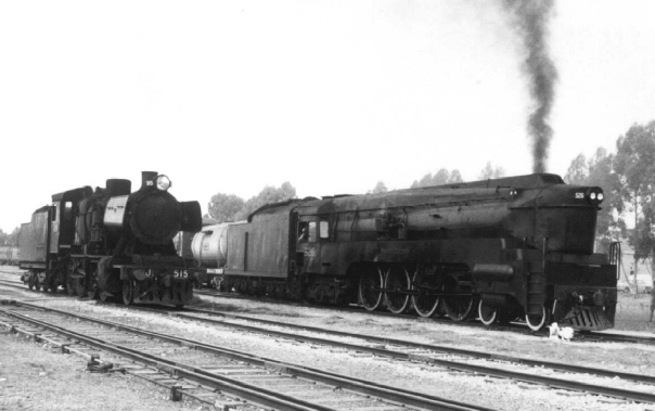 Victorian J515 meets South Australian 526 at the border connection of Pinnaroo. 13-4-1968. Photo: Bob Whitehead