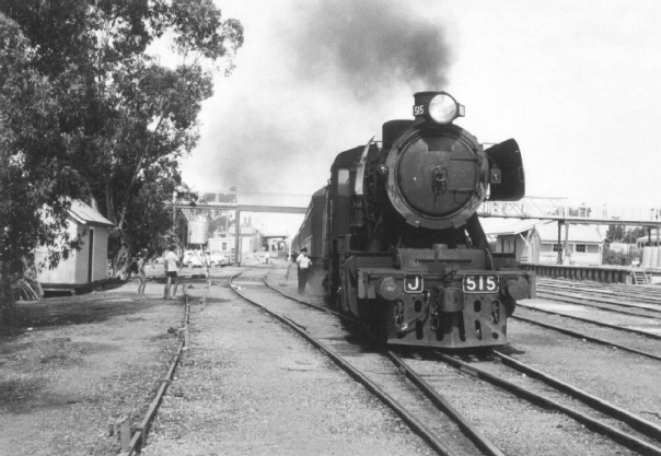 Driver W. Purcell and Fireman I. Gregory were in charge of J515 for the special trip from Mildura to Yelta and return on 13-4-1968 in conjunction with the Easter visit to Mildura by members of the Australian Railway Historical Society (Victorian Division). Photo: Bruce McLean