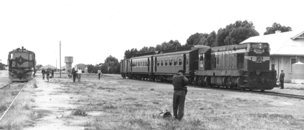 Members of the Australian Railway Exploration Association (AREA) combined with the Rail Tourist Association (RTA) for an unusual round trip from Melbourne via Ouyen and Tailem Bend (South Australia) and back to Melbourne. The AREA group in their special train consisting of T346, two carriages and brake van, ran from Melbourne to Ouyen and Ouyen to Pinnaroo. The RTA group in a similar special train ran from Tailem Bend to Pinnaroo. Both trains arrived at Pinnaroo where the passengers changed over trains and completed their round trip.