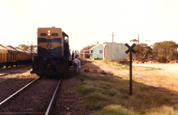 Following arrival of the special at Mildura, it was discovered that the special train would be used to convey empty GY grain wagons to Yelta. After shunting movements, the enthusiasts found their two carriages "Carey" and Sleeper No.5 attached behind the ZL brake van. The special train departed at 10.55 a.m. and arrived at Yelta at 11.51 a.m. On arrival shunting was undertaken to place the empty wagons at the silo and the full wagons positioned for return to Mildura. The special carriages were attached to the end of the train ahead of the ZL brake van.