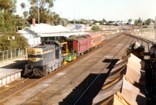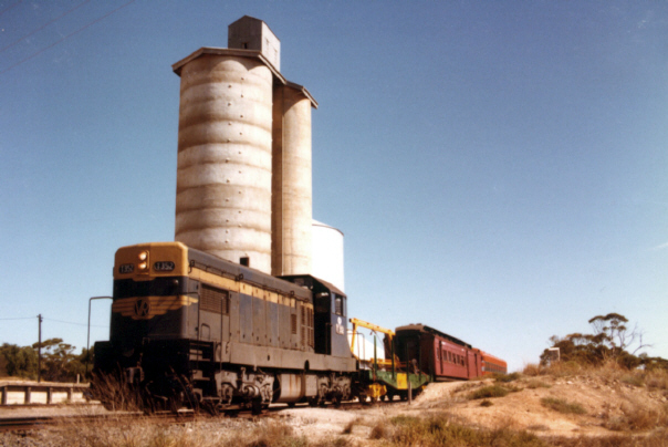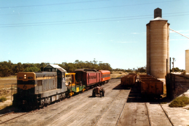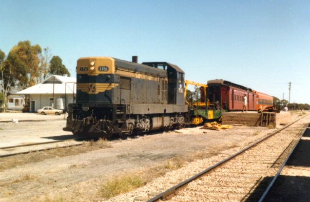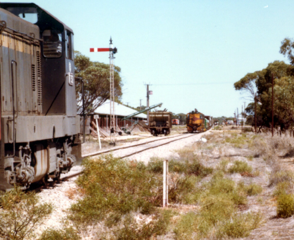 AREA special train stopped at Walpeup for safeworking purposes. 17-3-1984. Photo: John Page