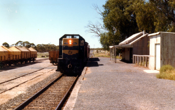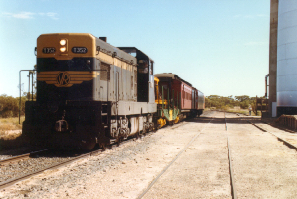 T352 arriving at Murrayville with the AREA special train to Pinnaroo. 17-3-1984. Photo: Bruce McLean