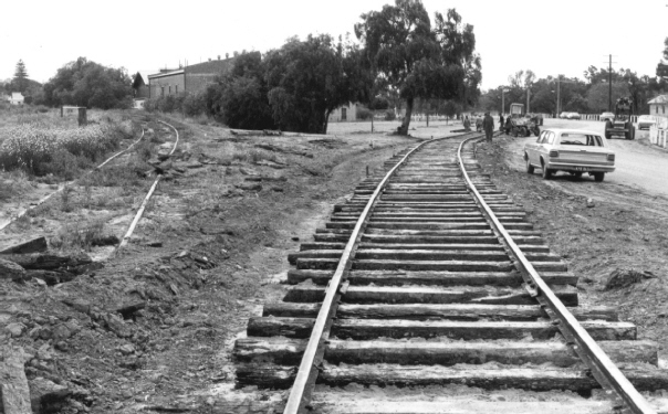 The Mildura City Council dismantled the old Mildura wharf line in sections to enable sections of track to be used for transferring K175 from the bottom of the downgrade to the preservation site past the old Mildura powerhouse. 13-9-1973. Photo: Bruce McLean