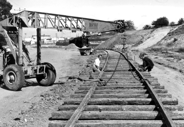 On 17-9-1973 the final lengths of track were laid and connected to the rails on the concrete pad. Photo: Bruce McLean