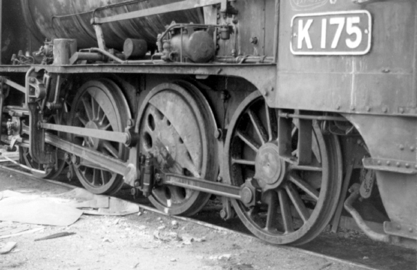 K175 was fitted with a set of Boxpok type wheels. Mildura 12-6-1973. Photo: Bruce McLean