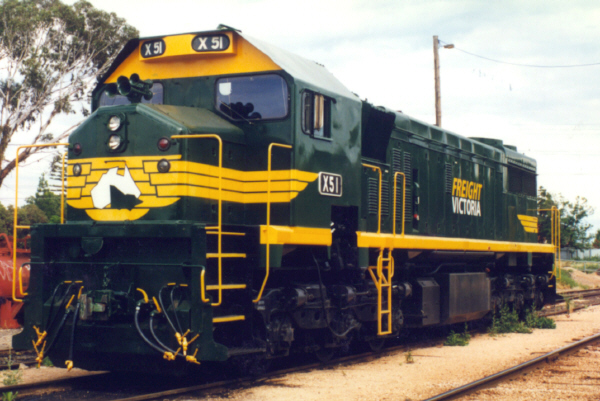 X51 in its new color scheme and carrying the name of its new owner, Freight Victoria. Mildura 8-12-1999. Photo: Bruce McLean