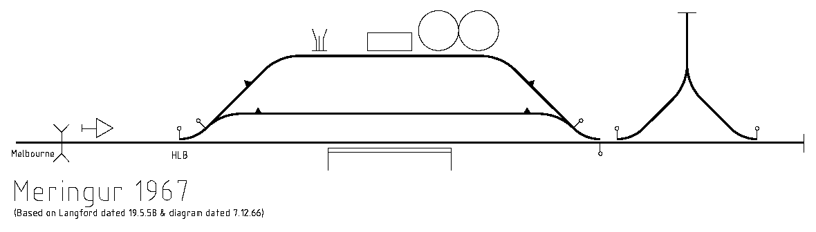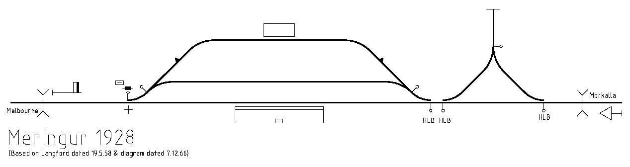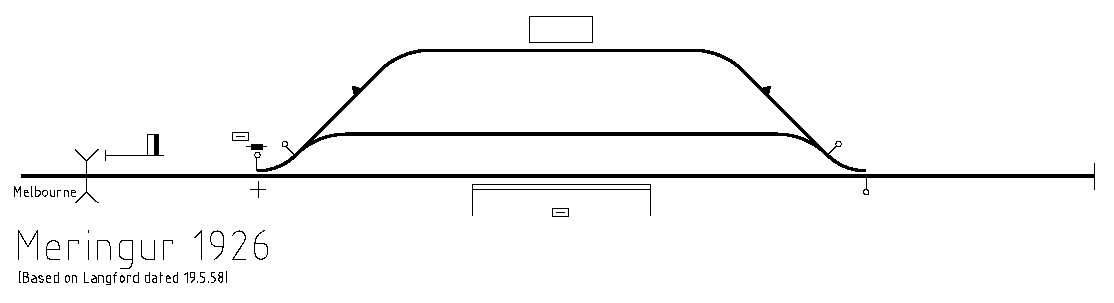 Meringur was open for traffic on 30-10-1925 with a Caretaker. A Down Home Signal (ex Werrimull) and Plunger Locking was provided at the Up end on 2-3-1926.